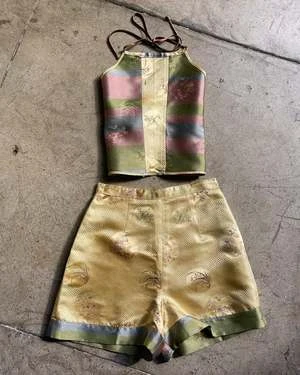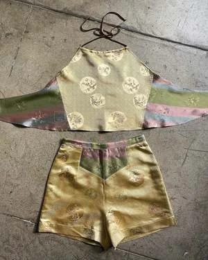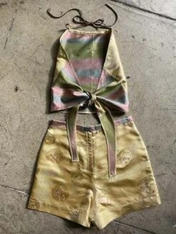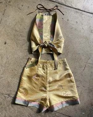 MADE-TO-MEASURE | Gold Rose Silk Halter Top + Shorts Set