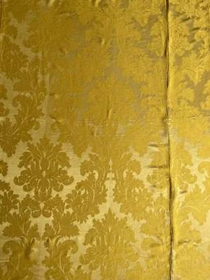 – Fine antique gold silk damask drape fabric with foilage motif
