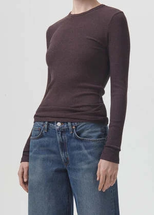 Introducing your new go-to top. AGOLDE’s Delphi tee is a cozy, ultra-soft slim long sleeve that can be worn on its own or layered under an oversized jacket. Crafted in a breathable cotton blend with a hint a stretch for all-day wearability.