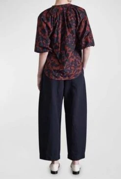 – Apiece Apart “Mitte” ruched blouse in a two-tone botanical print