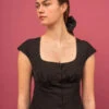 – Shirt collar, button closures at the front and cuffs, patch pockets at the chest, shirttail hem