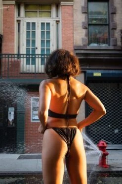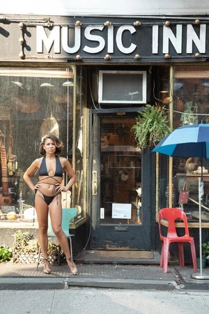 The string bikini gets a sustainable upgrade with Umorfil fabrication, derived from upcycled fish scales! Extra long ties and scrunch style create limitless styling opportunities. Made in NYC.