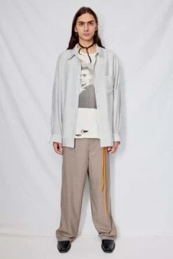 Stripe Rayon Classic Shirt from Assembly. Relaxed fit button up. Front pocket. Sleeve placket.