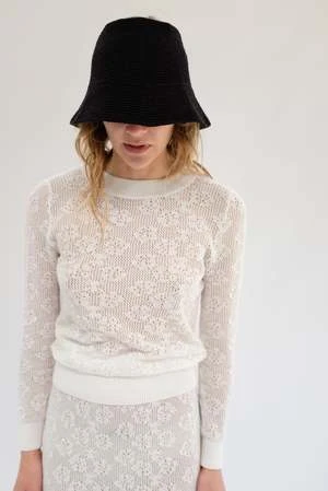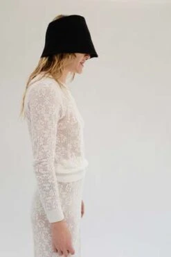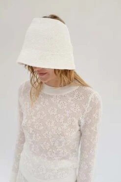 Hand crocheted cotton topless bucket hat, slightly asymmetrical. Provides great coverage from the sun. Pairs beautiful with our knits.