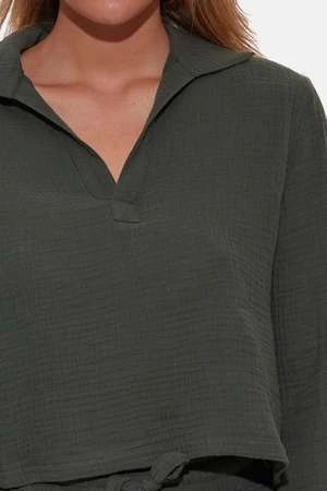 Wear the whole set for a unique Blue&Cream look or style with your favorite jean shorts. Made from 100% cotton gauze fabric this style is perfect for exotic weather. Take it to the Hamptons or on vacation it is an essential garment.