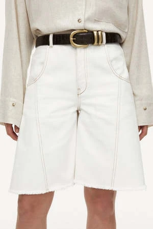These shorts are everything you need and more for warm weather months! No spring curation is complete without a pair of denim shorts with a touch of polish, such as the Mavou design. Made from organic cotton denim, it has a mid-rise silhouette and wide legs for a sense of ease. Pair with flowing blouses and simple sandals as you enter languid spring weekends.