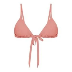 Classic triangle bikini top with soft cups and a self-tie statement bow with long straps on the back for adjustable fastening. It features thin adjustable shoulder straps and is fully lined.