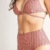 GRETA textured bottom medium high waisted bikini bottom. Medium coverage. Features in a retro-inspired medium rise, medium cut leg rise silhouette.