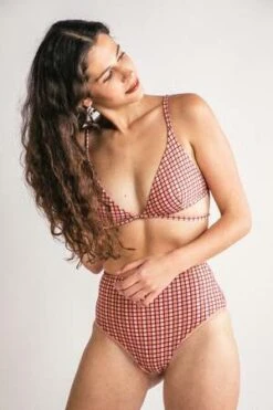 Fabrics made in Italy with ECONYL regenerated nylon is made out of waste thats been rescued from landfills and oceans around the world. Side MULTICOLORED GINGHAM 80% ECONYL regenerated nylon 20% elastane. Other side LIGHT PINK 80% ECONYL regenerated nylon 20% elastane.
