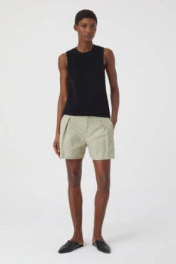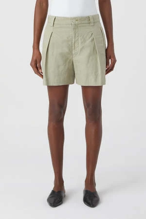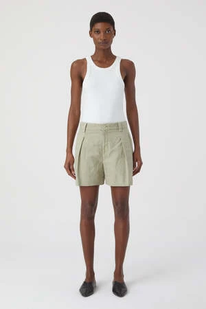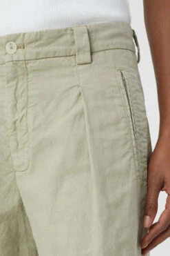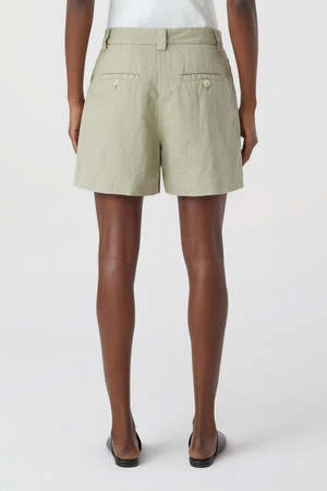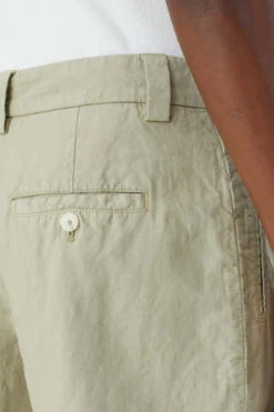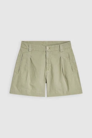 Made of a light linen cotton mix with a vivid structure and garment-dyed finish tailored and ready-made by Texdata: shorts with mid waist and pleats. Regular fit with piped pockets and buttoned back pockets.