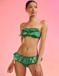 Green floral printed cotton bikini bottom.