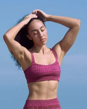 Ribbed bathing suit top. Formerly called Curve Top. This sporty silhouette works for swimming and everyday use.