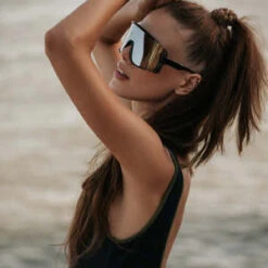 A REVERSIBLE sporty one-piece. The high-leg and piping around the neck and arms create a retro flair.