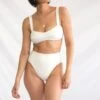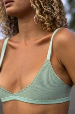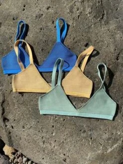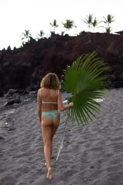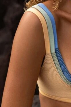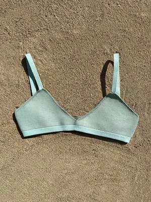 Triangle bikini top with minimal coverage. 3D seamless knit design in custom two color pattern. Designed in Hawaii. Made in Brooklyn, N.Y. Learn more about our Brand and product here.