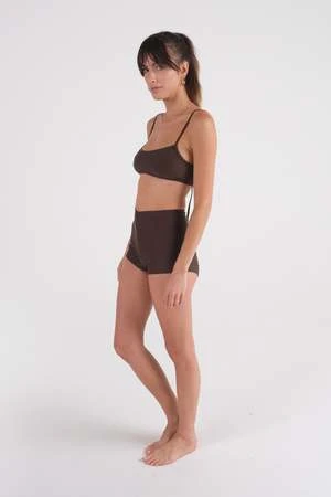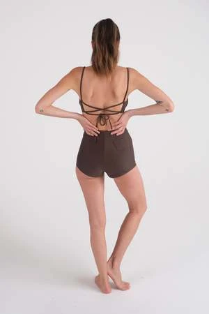 The Maude Top is a versatile bandeau-style separate featuring a strappy cross-tie closure, which can be worn tied at the back or front. Adjustable ruched detailing at the underarms allows for the perfect fit with extra room at the bust for maximum comfort. We love the Maude Top paired with the Tap Short, Tie Bottom, or High Kick for an effortless poolside look.