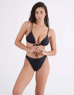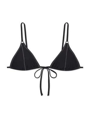 A classic with a twist. The Nico Tie Top is a timeless triangle style with a front-tie closure that can be worn wrapped to the back or tied in front. This essential separate features our signature apex seam detail at the cups for a flattering effect. The addition of a delicate O-ring at each adjustable strap results in a look that’s undeniably lingerie inspired.