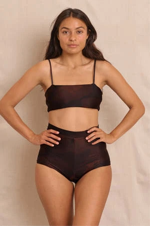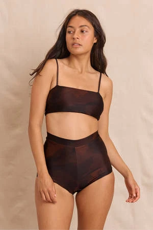 A simple band style top with clean lines and wide set, adjustable straps. Mix and match with your favourite bottoms or wear under a sun top or surf suit in the waves.