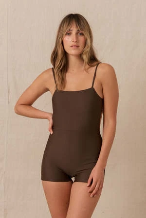 A modern take on a timeless 50s silhouette, the Terrain One Piece was designed to wear both in and out of the water. A feminine low back balances out the short style leg. A perfect piece for layering in and out of the water.