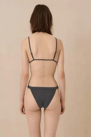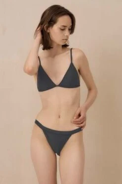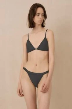 A timeless fixed triangle bikini top featuring elastic under bust, soft removable cups and adjustable straps.