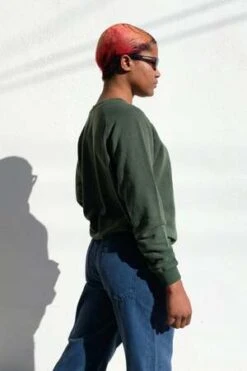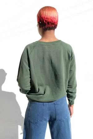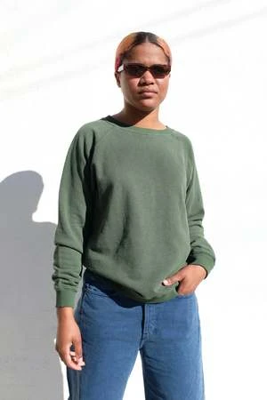 Unisex sweatshirt with an easy relaxed fit. Features a raglan sleeve, crew neck, and ribbed neckline and cuffs. “Inspired by slow-chill mornings where anything is possible.”