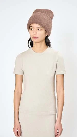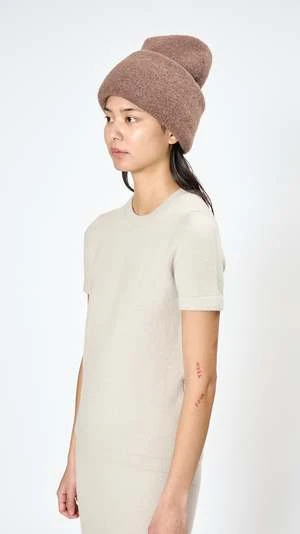 The Carpenter Hat is made up of a double layer of beautiful and warm felted alpaca. It has a seamless construction that can be worn straight or folded up. It is part of the Lauren Manoogian Essential Collection.