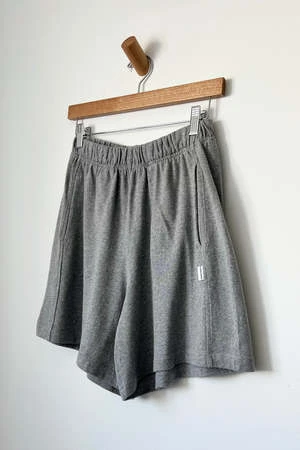 We needed heavy weight knit high waisted, A-line, not showing too much skin modern retro basketball shorts! Flattering design with a slightly shorter out seam and perfect mid thigh length. These beauties are made in 100% cotton heavy weight low gauge knit. Super raw textured yet soft and airy, garment dyed and pre-washed for a rich textured look with an ultra soft hand.