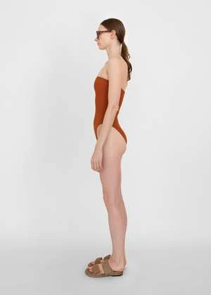 The one piece swimsuit for those who dont want tan lines. Sedici is the essential understated strapless swimsuit. Shaped from quick-drying stretch Lycra with a classic bandeau neckline, this piece is fun to wear and easy to style both on and off the beach. Finished with a high leg cut and medium coverage across the back.