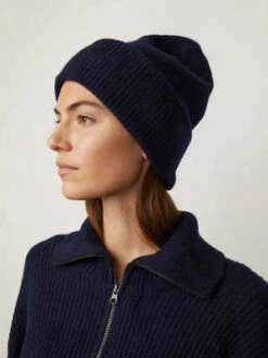 Lisa Yangs ribbed, wide brim Stockholm Beanie is a timeless winter warmer.
