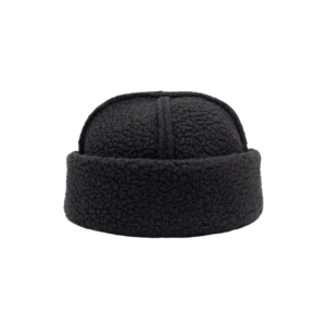 Fleece toque in black Polartec sherpa fleece. Exposed seams are meant to be worn on the outside. The toque is reversible. Fabric has stretch.