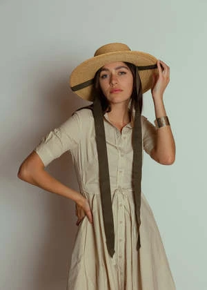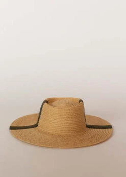 Lola’s Shadow Line Hat features a geometric crown with a wide, flat brim and a thread polyester ribbon band.