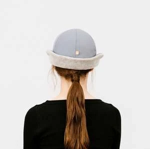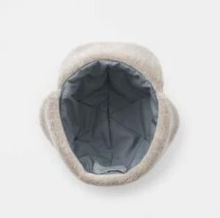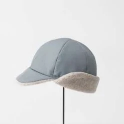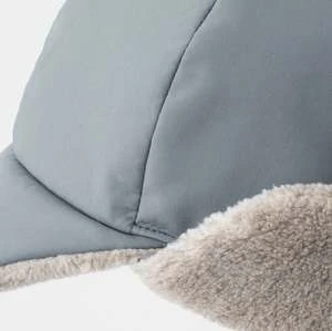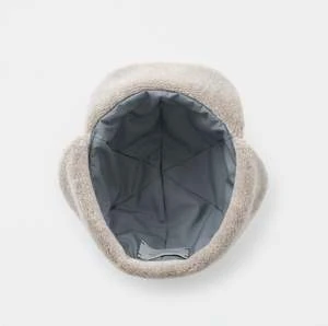 A padded cap with recycled polyester outer shell. Cotton and yak “shearling” inner layer. One size.