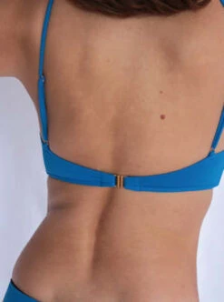 Sporty with a touch of glamor – the Greece bikini top features a bralette-style top with a clasp fastening. A delicate ring at the center of the bust adds to the styles care-free, relaxed charm.