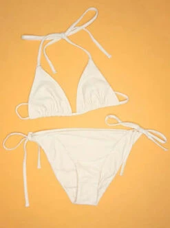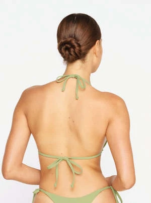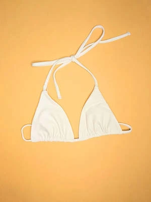 Barely there triangle bikini top with thin straps and halter neck. A minimalist’s dream.