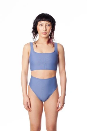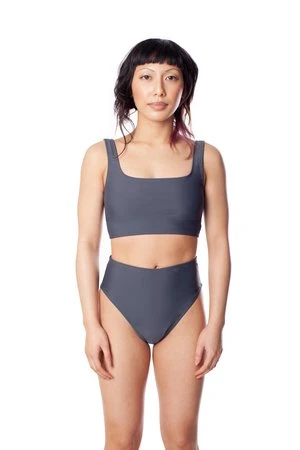 Tank style top with square neckline available in black, blue, sand, slate, and Maggie Groat x Minnow Bathers print.