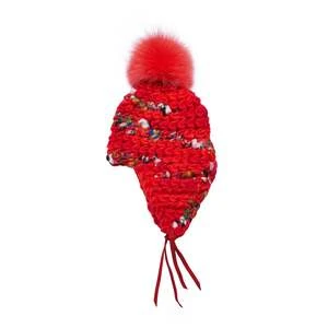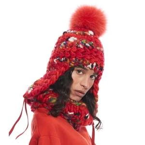 design | the fro tri – xl pom on top, suede straps on bottom that can be used to tie the ear flaps back if you choose