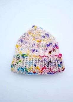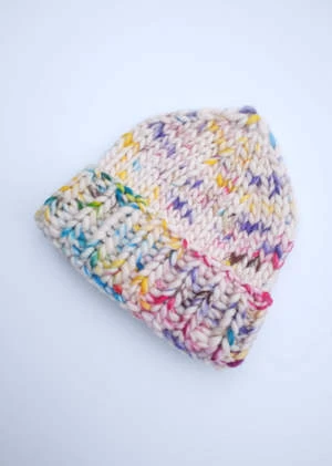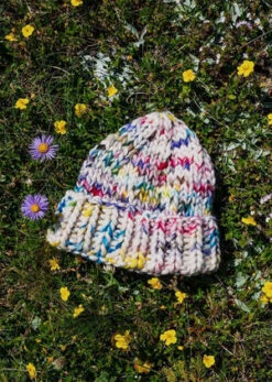 – Hand-knit in Switzerland by Wilma Schwartz – a real mother knitting toques.