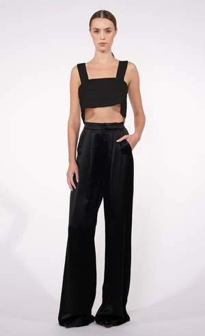 The Cal Crop is a unique and trendy crop top that features distinctive raw hem detailing, adding an edgy touch to its overall charm. The layered design brings a dynamic element to the top, giving it a modern and sophisticated allure.