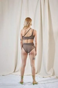 An asymmetrical bikini top is going around the body in a spiral from the top to the bottom. During the design process, we minded all needs for your confidence – breast darts wont flatten your breast and together with spiral seams will highlight the attractive womens body curves. The whole garment is doubled to ensure a perfect fit while your active time!