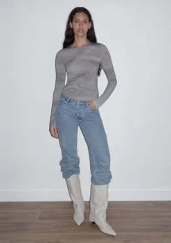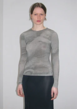Round neck, slightly sheer, long-sleeved viscose top with ‘Angel’ print.