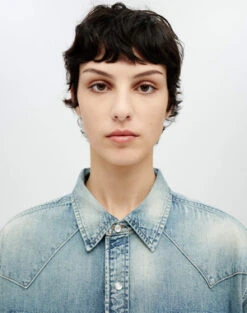 Super oversize classic fit. The Western shirt is rigid denim, just like your favorite vintage denim shirt with no stretch.