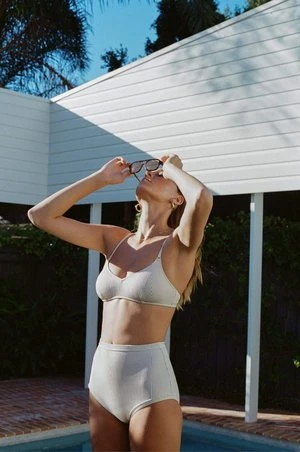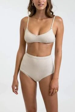 Inspired by the ease of spring and the stretching white sands of the Pacific Island, the Noumea Ring Trilette Top is cut from a soft tonal rib texture with o ring features suitable for A to B cup sizes. Complete this look with our matching Noumea pant or explore our mix and match options.
