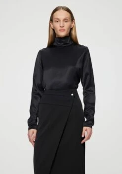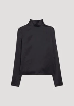 Layering top with funnel neck in a heavy satin quality from the Italian mill Fasac.
