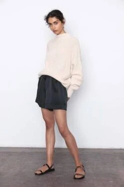 – Relaxed fit, high rise, drawstring elastic waistband, pull on.