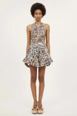 The Ambre Short is a new playful silhouette cut in cotton poplin fabric and finished with flouncing ruffles along the leg openings. This short sits at the high waist and has a fixed waistband, pockets and a side-seam zipper.