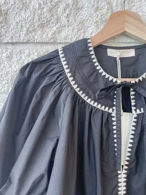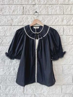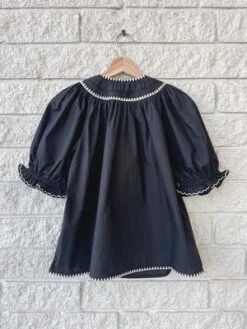 Flaunt effortless sophistication with this romantic Ruby Top. Boasting a loose fitting puff sleeve, a flowy bodice with intricate pattern details along the collar, cuffs, and hem, this blouse is perfect for special occasions or your daily wardrobe.