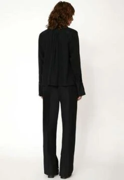 Add a dose of daring to your wardrobe with the Halli Shirt in blue black! It’s made with lightweight washed silk crepe for a luxe feel, plus a high collar, long sleeves with high cuffs, and a button placket with natural mother-of-pearl buttons. And the deep pleats at the front neckline? They add a touch of drama that’s oh-so-chic!