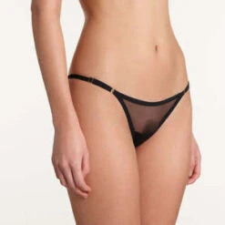 Made out of fine tulle, this mini brief can be adjusted on the hips for a more or less high-cut effect.