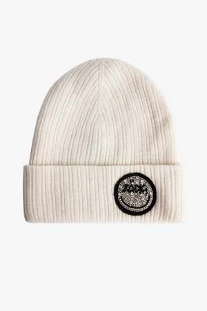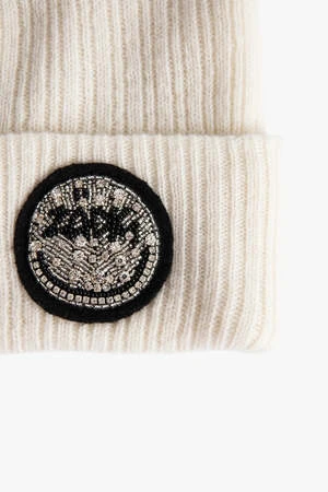 A cold weather staple that youll wear into spring on your morning walks this fun Zadig & Voltaire accessory is adorned with a smiley rhinestone embellishment and a snug fit. Textured ribbing all over and seamed top with a roll over brim.
